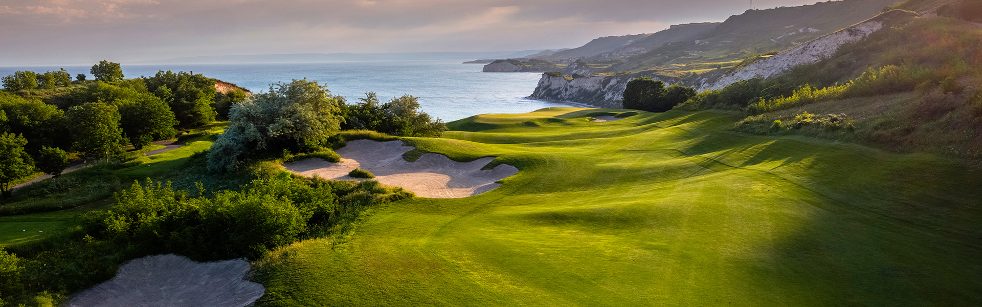 Le 5 étoiles de luxe Thracian Cliffs Golf & Beach Resort offre à ses clients une expérience de vacances de golf inégalée en Bulgarie. Face à la mer Noire dans chaque trou, le parcours de golf Signature adjacent et unique de 18 trous conçu par Gary Player est l’un des terrains de golf les plus fascinants au monde. Situé sur la côte nord de la mer Noire bulgare, entre les villes de Balchik et Kavarna, le Thracian Cliffs Golf & Beach Resort offre une vue imprenable et harmonieuse sur la verdure sur les falaises et le bleu de la mer. Le parcours de golf Signature, considéré comme un parcours unique que l’on ne trouve nulle part ailleurs sur la planète par Gary Player, a été récompensé comme European Golf Resort of the Year 2014; la 3ème année suivant son ouverture officielle. Faisant partie de la meilleure destination de golf bulgare Cape Kaliakra, le complexe offre une expérience de vacances de golf unique avec son hospitalité bulgare renommée, ses services haut de gamme, ses restaurants gastronomiques raffinés, ses chambres de luxe, ses excellentes installations, ses piscines délicieuses, ses vues imprenables et son spa glorieux. Le magnifique complexe est un excellent choix pour des vacances de loisirs et de golf.